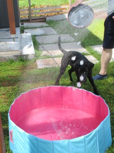 お隣のレイくんがシャンプー前の水遊びをしていたので