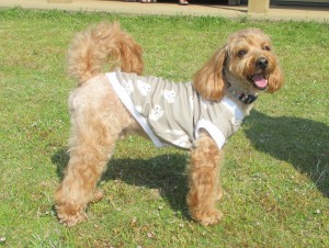 わが宿『はるこながい』の屋号を背負うわんこ、はる。
